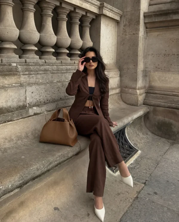 Add this chic yet functional outfit to your collection for effortless style in any setting. Perfect for running errands, brunch with friends, or lounging at home, the Coffee Tie Up Cotton Top and Pant Co-Ord Set is a go-to choice. Time to upgrade your fashion game without compromising on comfort.