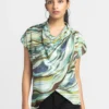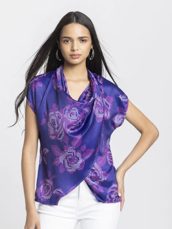Elevate your wardrobe with this Purple Cowl Neck Geometric Print Drop Shoulder Top, designed for those who value unique yet understated fashion. Perfect for casual outings or semi-formal settings, this top combines comfort and sophistication effortlessly.